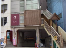 | 1.JR口を出て、すぐに歩道橋を上り、右に曲がり、右側の階段を降ります。 2.そのまままっすぐに50mほど進んだら左に曲がります。 |